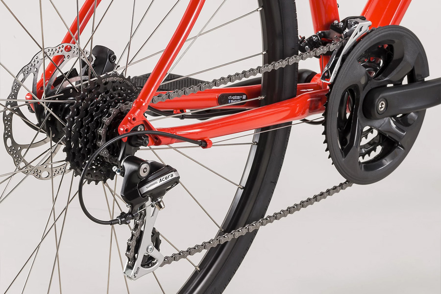 以前のクロスバイクはフロント2枚や3枚のギアに、リアが8速などという構成が一般的でした。